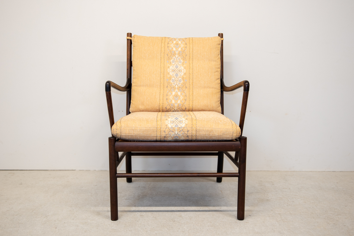 | 備考 | デンマークの巨匠Ole Wanscher(オーレ・ヴァンシャー)によって1959年にデザインされたコロニアルチェアです。コーア・クリントに師事し、18世紀の家具をリデザインし、品格の高い作品を多く製作しています。コロニアルチェアも18世紀イギリスのラダーバックチェアのデザインを取り入れたものと考えられています。 OLTAS FLIKなどで張替予定です。 Kvadrat社生地、レザーでの張替えも別途見積いたします。 |
