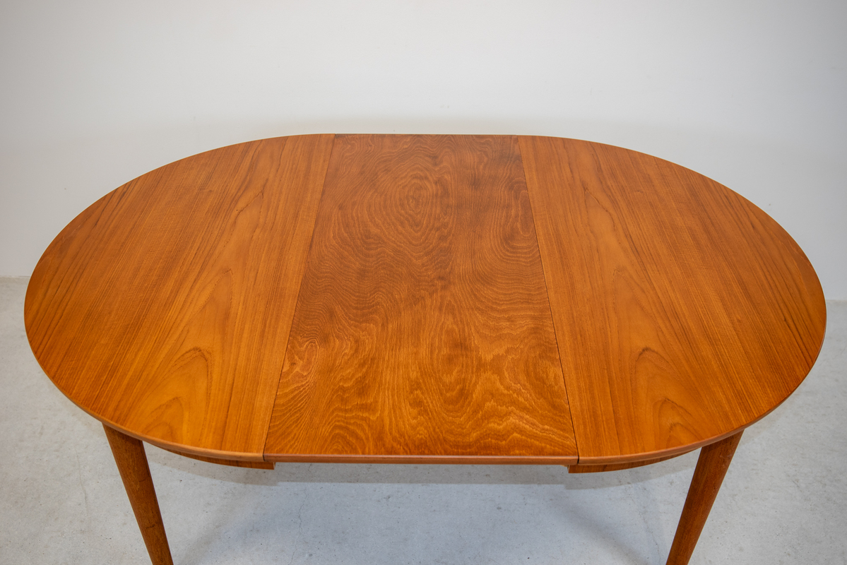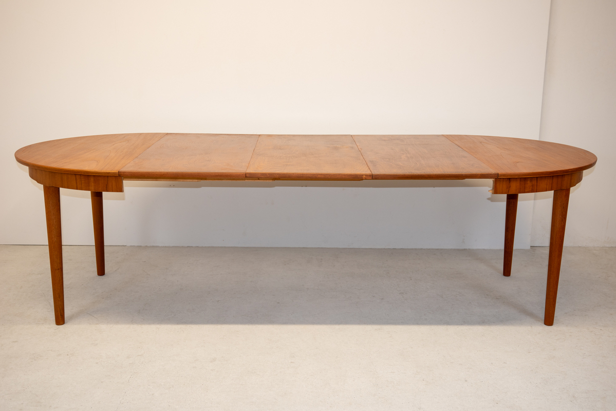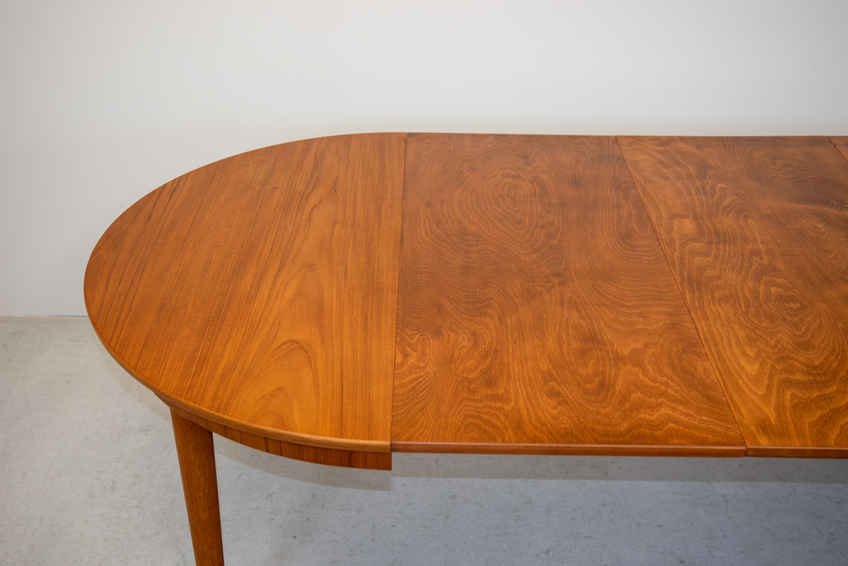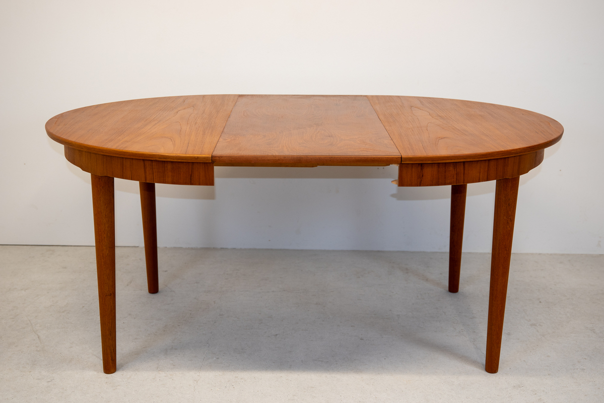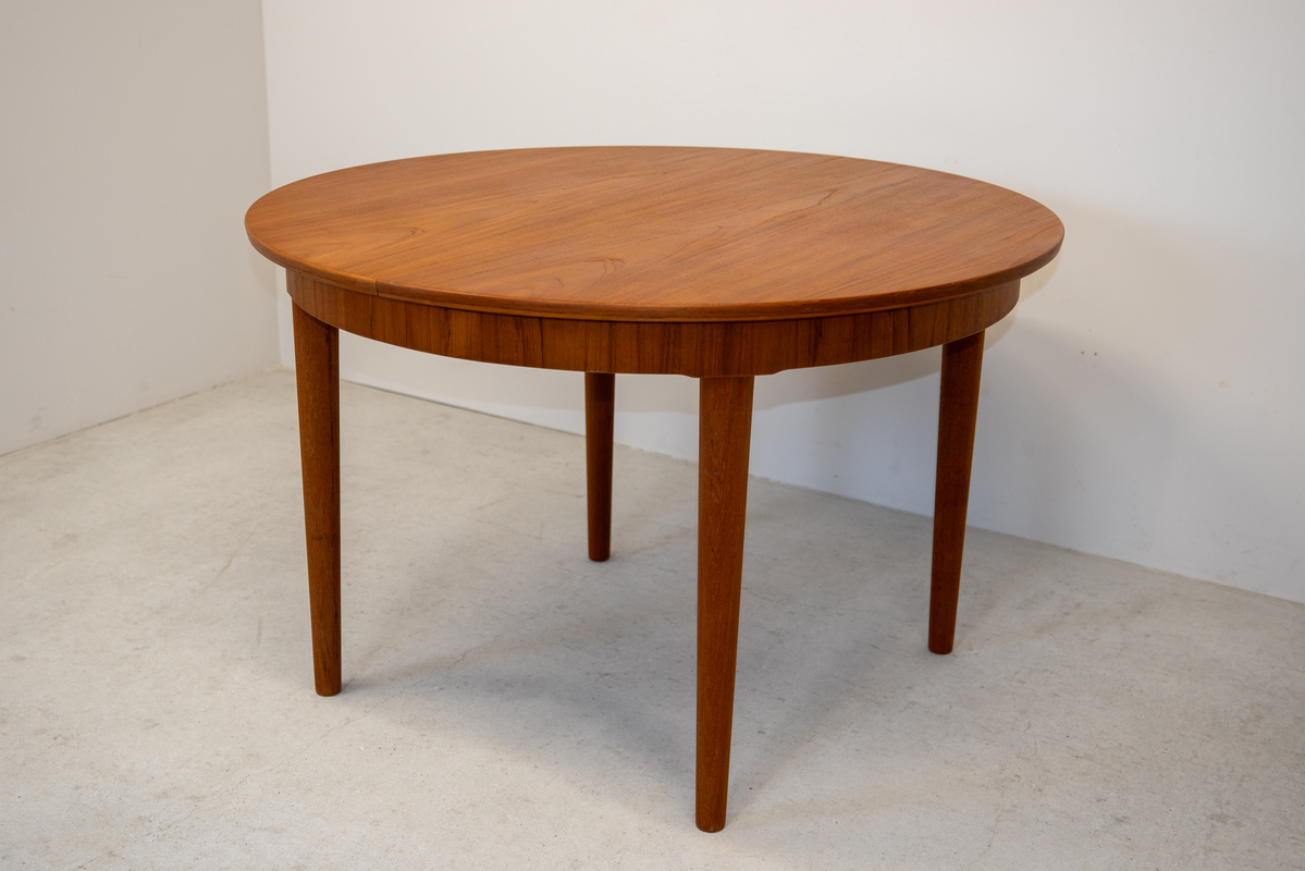 | 備考 | チーク材のラウンドテーブルで、直径は115cmと使いやすいサイズです。伸長板は3枚付属していて大人数で集まる時にもとても便利です。 補修は全体をサンディング後にオイル仕上げにしております。 |